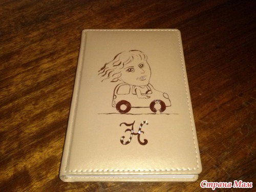 А там... Я ведь не сразу поняла, каюсь, но просто потрясающая вещица - ежедневник с моим портретом. Ведь это мой портрет? Я угадала? Ведь это моя моська из моей машинки? Признавайся - кто автор этого потрясающего шедевра?