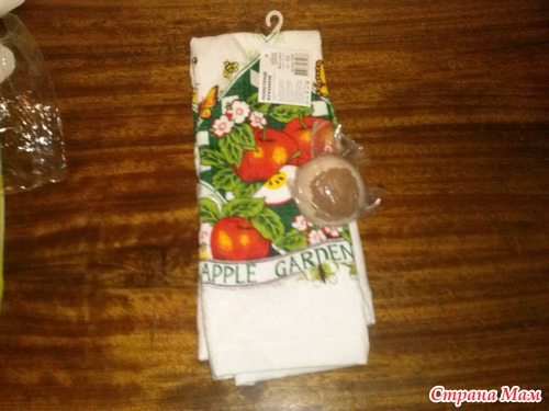 Аппетитное и мягкое кухонное полотенчико и нечто, этикетка потрепалась, единственное, что могла разобрать, что это нечто как-то странно ведет себя в воде, шипит вроде