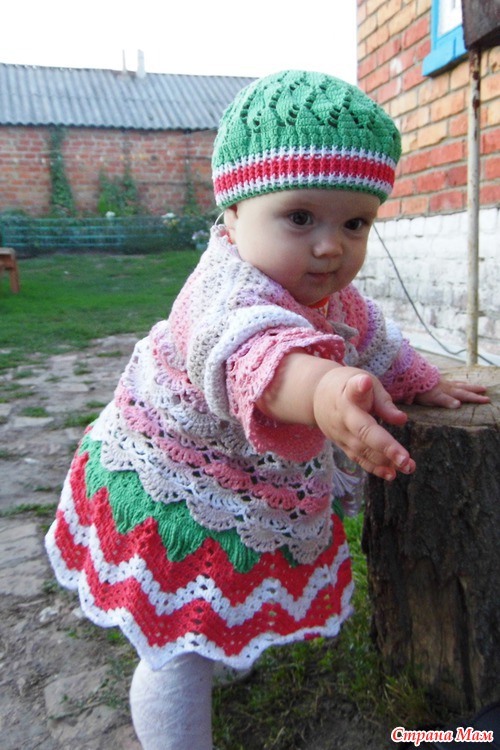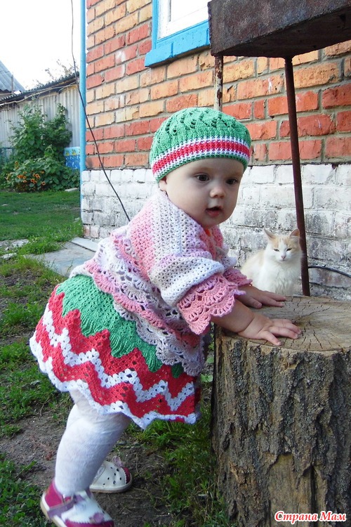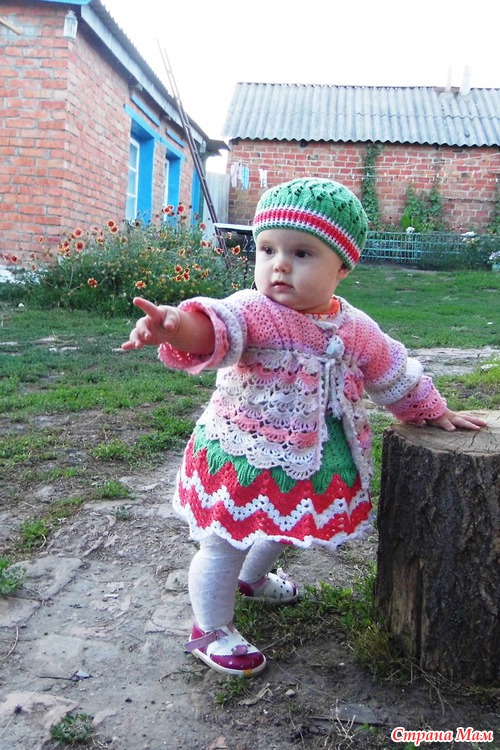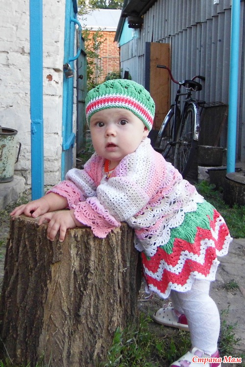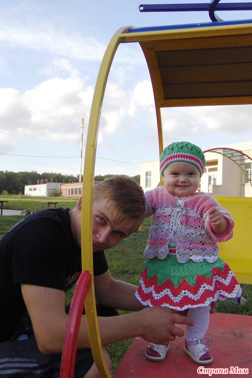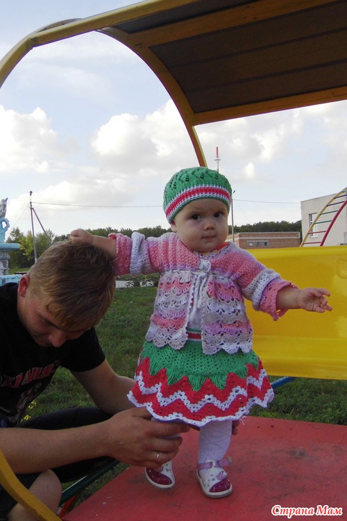 ну и пусть, а у нас собственно обновочка... беретик подстмотрела где-то тут в СМ, а юбочка это чистая импровизация, хотелось что бы на цветочек была похожа, причем в процессе вязания фасон менялся несколько раз... а про кофточку я уже рассказывала, вот тут https://www.stranamam.ru/post/5999310/, И так... показывает как всегда моя моделька, сегодня демонстрация происходит на прогулке