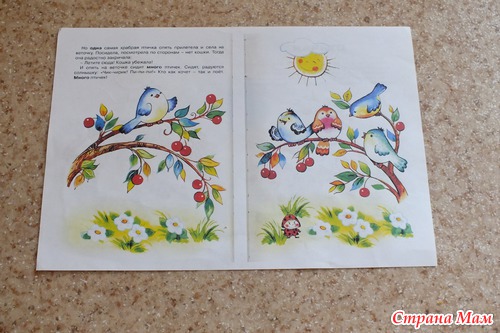 Сидели птички на веточке, песни распевали, солнышку радовались. Тепло, хорошо! Много птичек сидело.