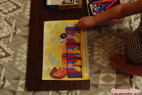К сожалению у нас нет пока блоков Дьенеша, вырезаю фигуры из гофрокартона.