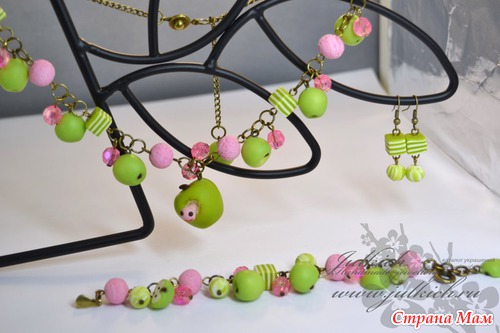 Комплект "Любительница зеленых яблочек" (подарок для одной маленькой девчушки, поэтому размеры украшений соответствующие)