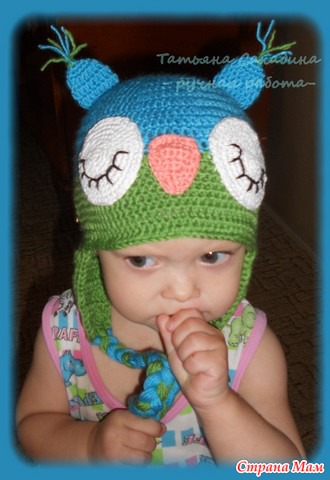 Шапочка "Спящий совенок". Любая шапочка-зверушка для малыша - 500 рублей, с флисовым подкладом - 600 рублей. Шерсть+акрил.
