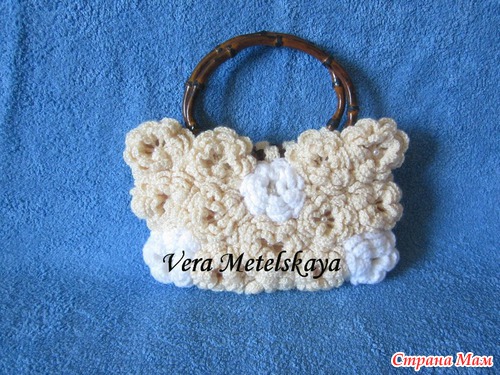 сумочка связана из элементов в виде розы