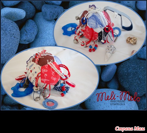 висюльки какие-то были, какие-то в интернете заказывала (рыбок деревянных, например, бусины разные и т.п.), что-то в магазине покупала (чтобы по цвету подходило), а что-то и сама делала (например, подвески с пищалкой и с пластиковым зеркальцем сделаны мной из фетра, а сами пищалку и зеркальце в интернете заказывала). на какой возраст? да фик знает! от нуля и до....пока ребенку интересно будет!