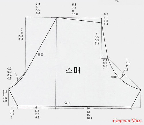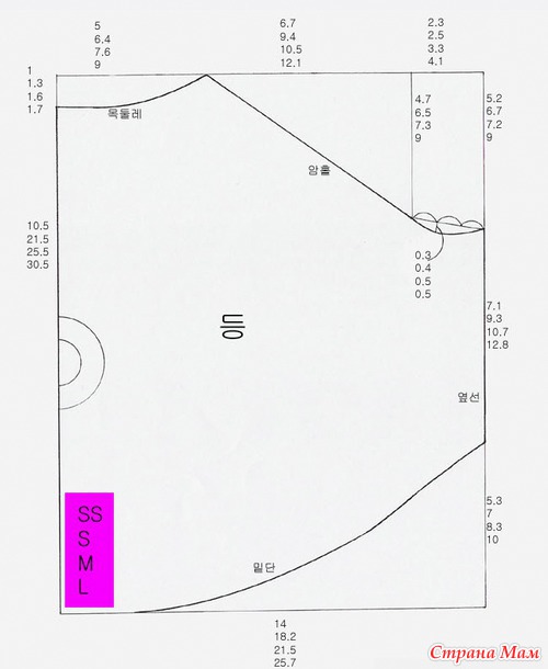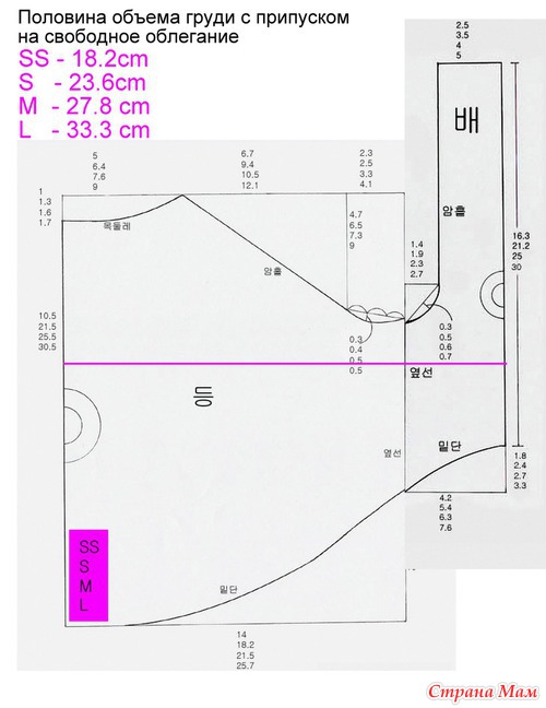 Даны размеры для построения выкройки четырех размеров.