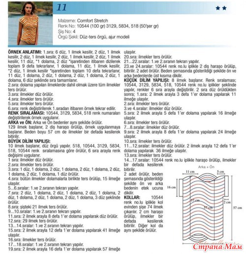saa doru 2 ilmek beraber al1narak 1 ilmek kesilir - убавление на 1 петлю, провязывая две петли вместе с наклоном вправо