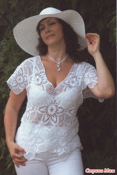 Вязаная крючком ажурная блузка