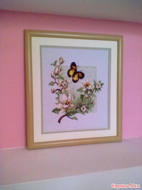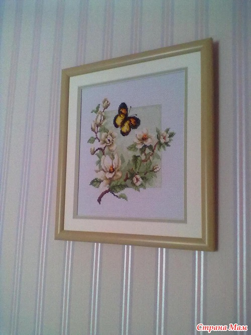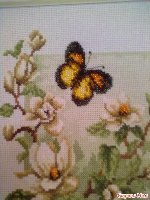 фотки конечно с телефона. качество так себе но красоту разглядеть можно. я думаю многие такую вышивали или видели. Фирма Чаривна мыть. Магнолии. Точного размера не скажу так ка последнюю линейку доча