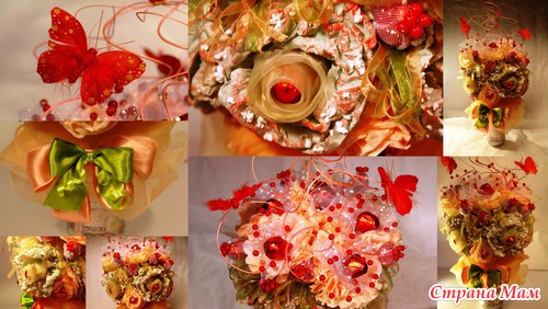 В наше время бонбоньерки существенно изменились. Их форма, содержание и оформление диктуется неограниченной фантазией новобрачных. В Росии традиция преподносить гостям сладкие сюрпризы становится все более популярной. И здесь оказываются как нельзя кстати букеты из конфет.