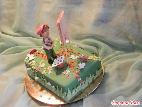 Приветик!... тортик тока сделала... наверно кто то узнает фигурку... я показывала.. но был он юный композитор.. а теперь он юный художник... девушка которая тортик заказывала... попросила переделать на художника Читать полностью