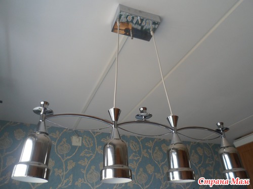 там в конструкции предусмотрено,что установлены три свечи в подсвечниках сверху... Мы , конечно , сходили в магазин, прикупили свечи, установили их и сели под лампой чай пить... И тут с лампочек стал капать парафин!!! Ужас! А лампа такая уютная в этом виде оказалась, такой приятный свет над столом растекался! Уютно было на кухне! Все мои надежды рухнули в этот момент! Всё! Не получается продлить жизнь этой лампы! Так печально! Она сразу же всем понравилась и вдруг- такое разочарование!