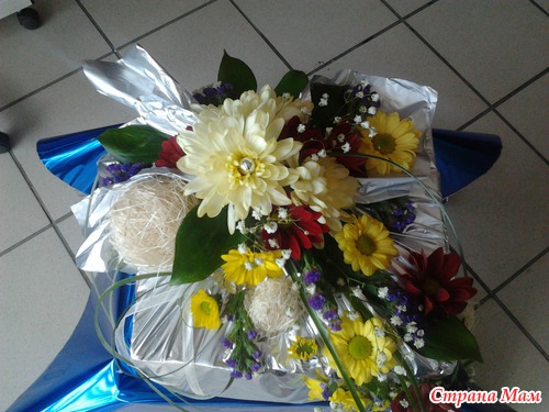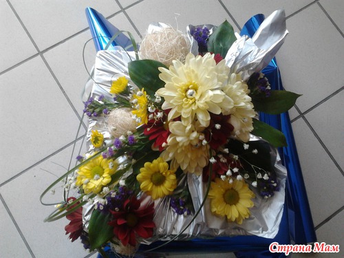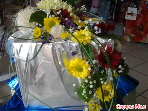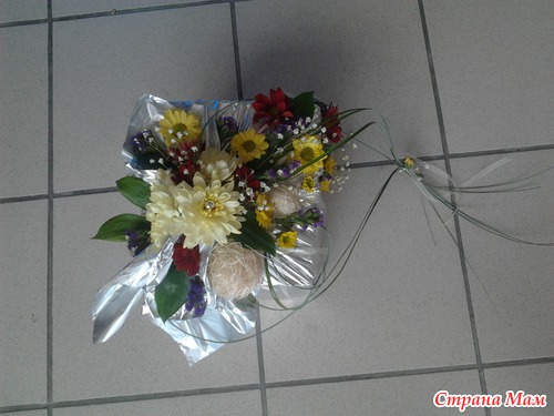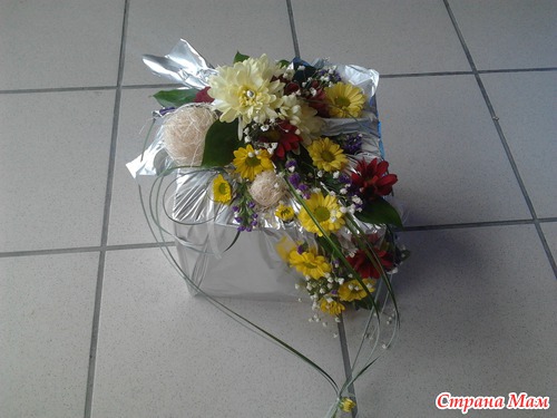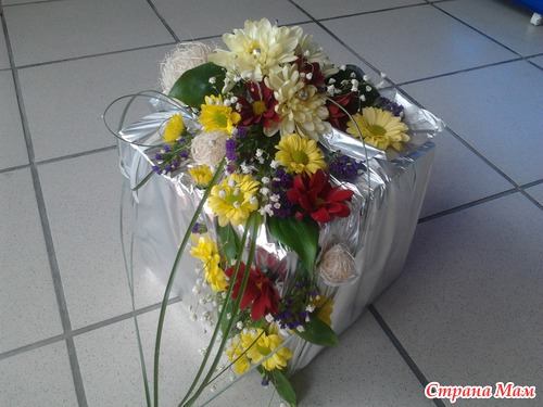 Такой креативный вариант упаковки подарка у меня получился. Я использовала живые хризантемы. Думаю получилось оригинально. Фото с разных сторон. Читать полностью