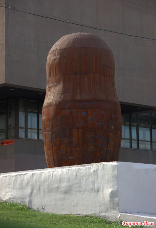 Масштаб действительно шокирующий, больше двух с половиной метров в высоту и не меньше 2 в диаметре. Но как-то жалко мне "матушку" за 3 года, проведенных на открытом воздухе рядом с с Енисеем она превратилась в ржавую матрешку: