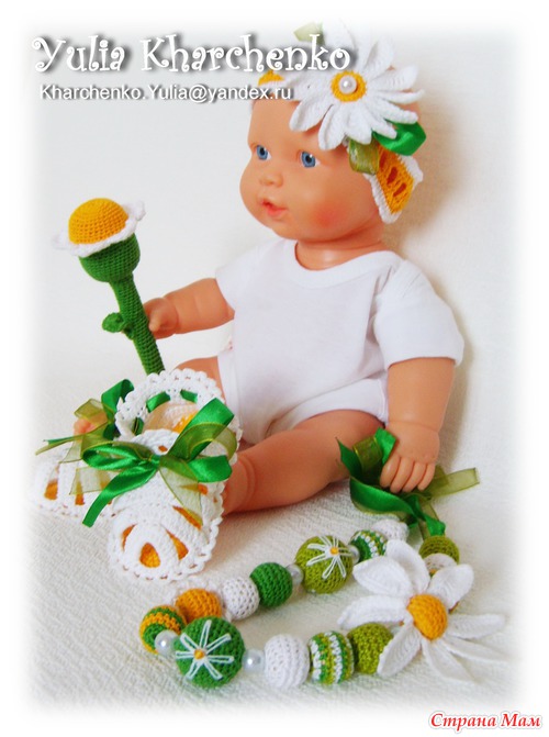 комплектик с погремушкой и слингобусами "Ромашки для очаровашки" - ниточки Ирис