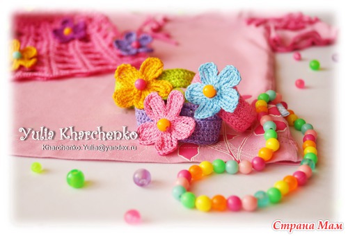 и из Анны-16 вот такая "Цветочная полянка" с браслетиками для моих маленьких модниц (ниточки Ирис)