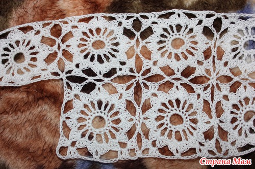 Затем вяжем нижний край - у меня просто полоска из квадратов.
