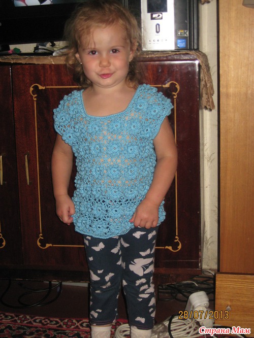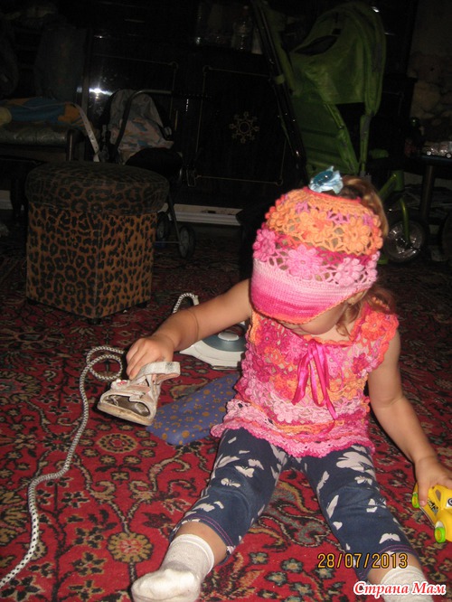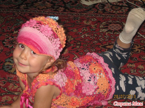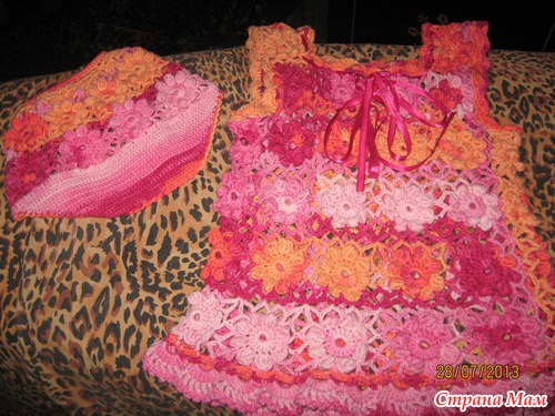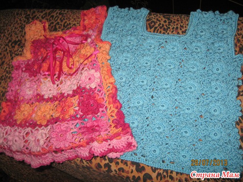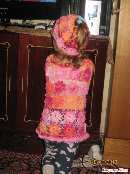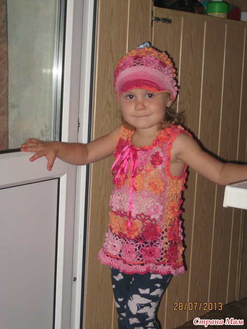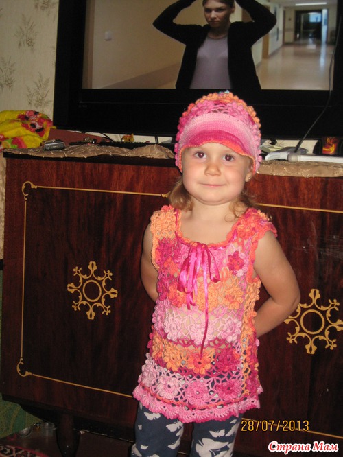 Вот такие теперь у нас есть кофтенки, узор настолько понравился что связалась сразу вторая, причем случайно получилась на вырост, и шапочка к первой...