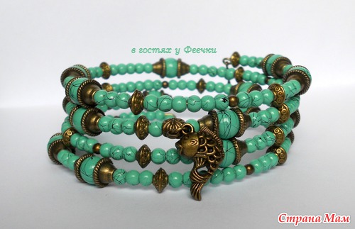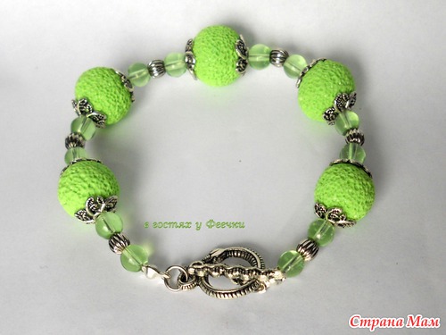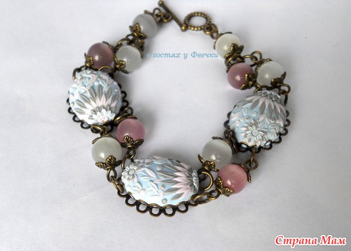 Изящный браслет в технике филигрань с бусинами кошачьего глаза в тон
