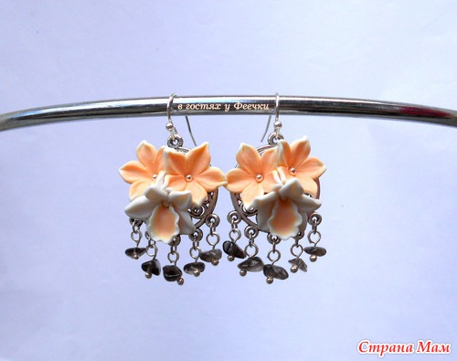 при желании браслет можно дополнить миниатюрными серьгами-орхидейками - 250 руб