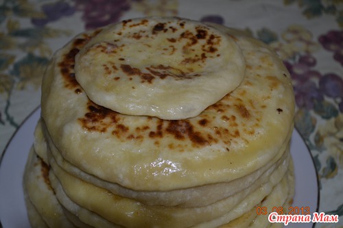 Готовые хачапури смазывать сливочным маслом и складывать стопочкой, как блины.