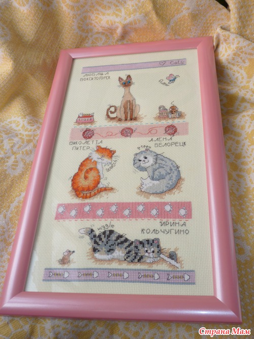 А ещё завершила свой кото-робин. Вышивали наши См-очки на канве цвета "слоновая кость".