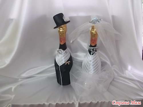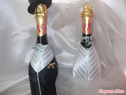 Всем здравствуйте! У моей подруги женился сын. Пришлось немного помочь в мелочах, оформить, зал, бутылочки. Ну, а как получилось судить вам. Жаль, что времени на это было 4 дня, а гостей 50 человек.