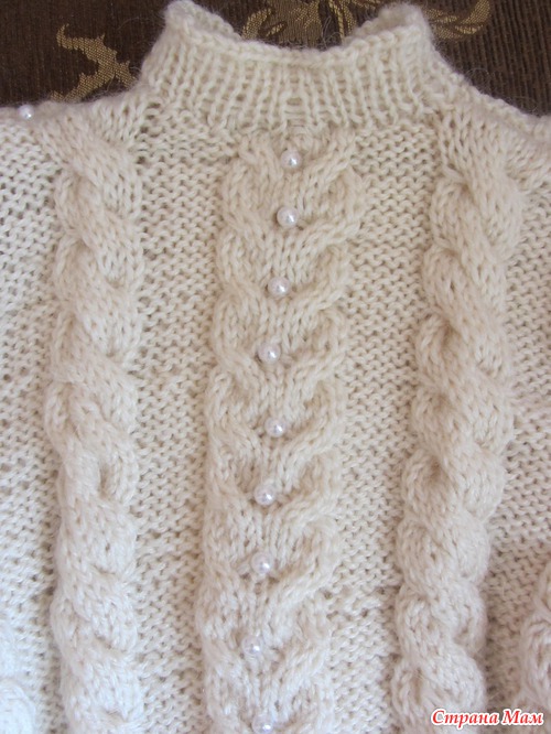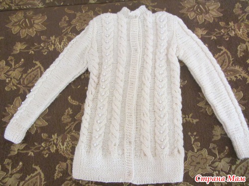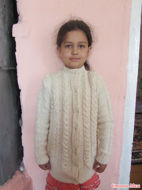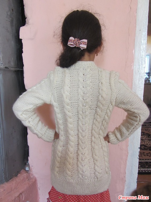 . А аран с бусинами идет так же по длине всего рукава. Пуговицы пока не пришила, так как их не хватило, ждем поездки в город, что бы их докупить. Сейчас мы пока на даче в деревне