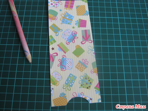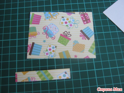из скрап бумаги вырезаем полосочку 1*6,5 см и прямоугольник 8,5*6,5 см