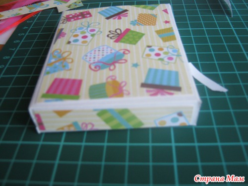склеиваем( лучше склеить по длинной стороне чтобы потом удобнее было вставлять дно коробочки)