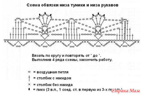 Приветики всем страномамочкам. Еще лето, и многие собираются на моря, думаю такие тунички им как раз пригодятся Белая туника Схема к белой тунике Схема обвязки Розовая туника схема к розовой тунике Читать полностью