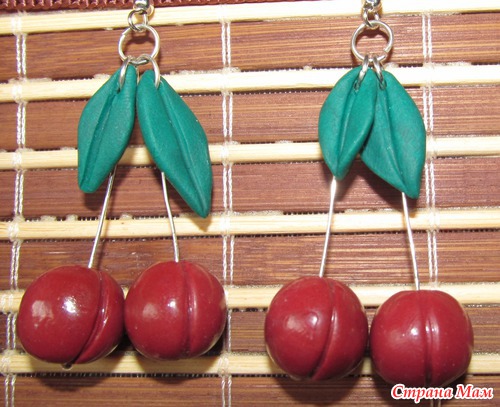 Тэги: полимерная глина, вишня, серьги