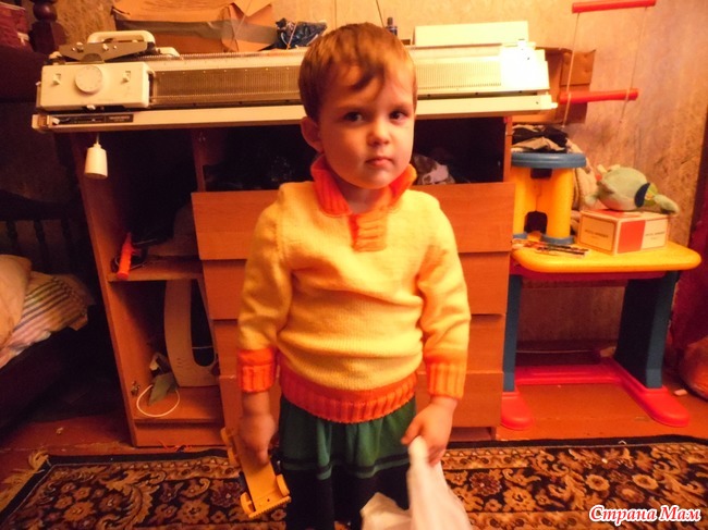 Недавно приобрела новую машинку. Двухфонтурный Сильвер 280. теперь вот потихоньку осваиваю. начала конечно с простейшего. и маленького. из остатков пряжи связала свитерок для младшего сынишки. Получилось не без огрехов, но все-таки