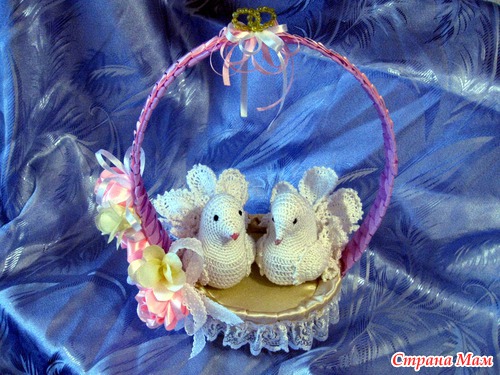 Вот такие голубки получились у меня для моей двоюродной сестренки. И корзиночка для белокрылой пары.