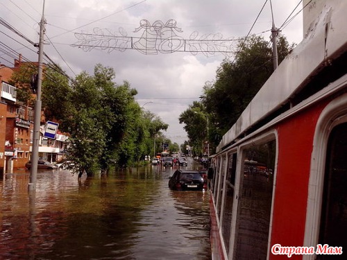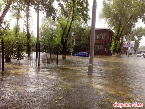 А у нас в городе дождь. Это перекресток, через который мы каждый день ходим гулять в парк, как хорошо, что в субботу мы не пошли гулять вовремя, потому что готовили папе вкусный ужин. Мне казалось, это был просто сильный дождь, шел минут 30 кажется, а дальше смотрите сами. Фото из интернета, сейчас туда не проехать, дорога перекрыта.