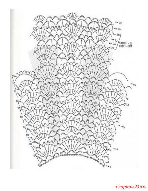 потом считаете раппорт узора веерочки ,чтоб петельки подола распределить и продолжаете вязать подол