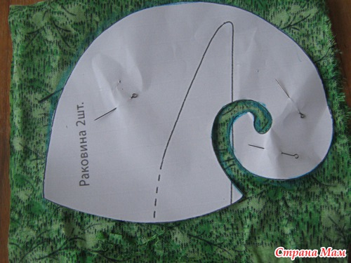 обрезаем ненужную ткань, оставляя на низ раковины 1 см, а по бокам 0,5 см