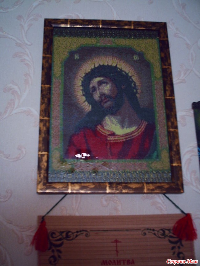 Вот такую икону для меня вышила моя доченька. Иисус в терновом венце.