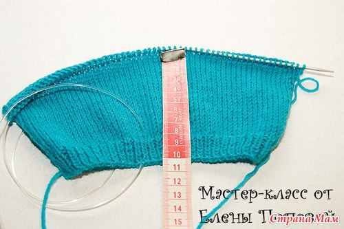После резинки связать лицевой гладью 24-28 рядов. От начала резинки должно быть не менее 10см.
