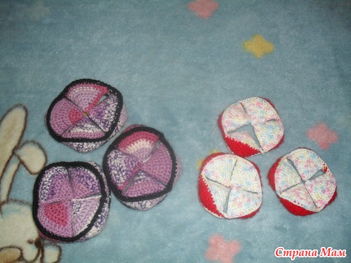 на этот раз это пазл. Вязала по одному описанию, мячики получились разного размера из-за толщины ниток.