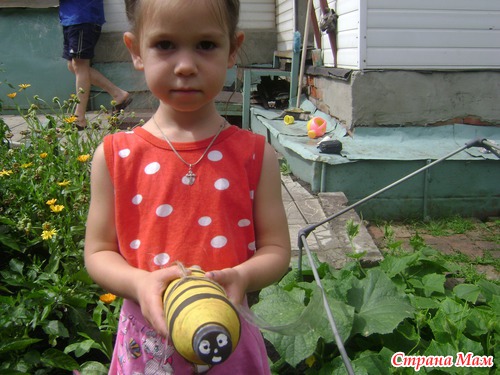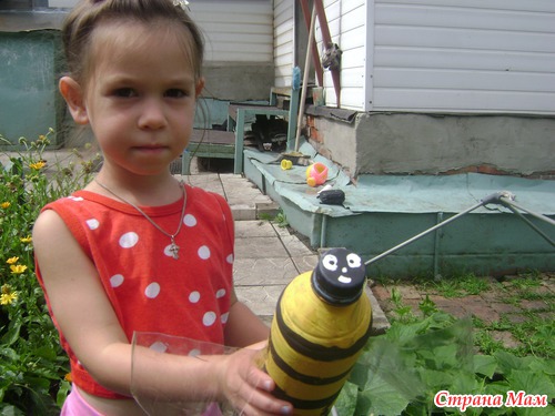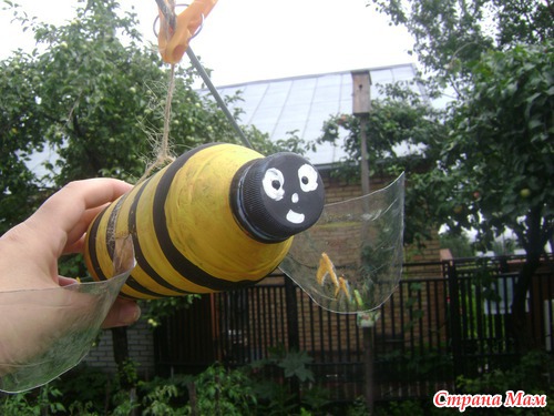 Думали мы с Анечкой, думали и придумали. Решили сделать пчелку из пластиковой бутылки