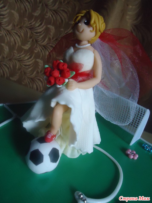 Спасибо! Фату нанизала на нитку ,хорошенько стянула. В голове сделала дырку ,вставила фату,немного обмазала мастикой вокруг и сверху уже нацепила пучок.