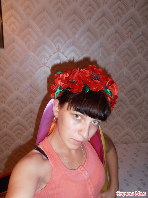 Привет всем. Вот заказала у меня девочка украинский венок, но чтобы были одни маки и ленточки. Я была с начала в растерянности , но надеюсь у меня получилось.