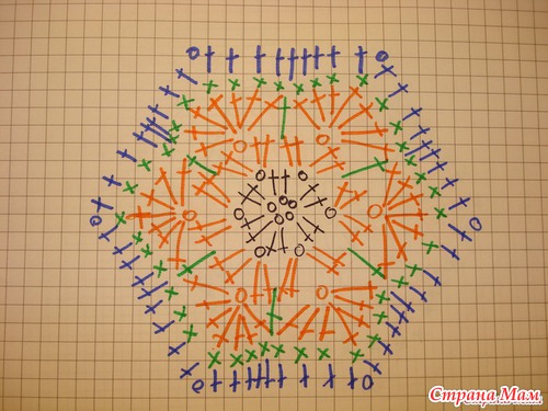 для вязания используются 6тиугольные мотивы и 5тиугольные, по этой схеме (взяла из предыдущего онлайна по бегемоту))