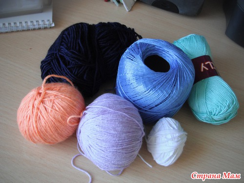 Я буду делать небольшую (сантиметров 30), поэтому я использую хлопок не толстый, мерсенезированный, остатки разной пряжи.
