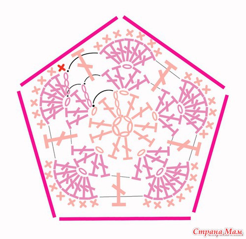до нужного размера, последний ряд делаем вп на углах, как на предыдущих мотивах, для того, чтобы были видны эти грани))