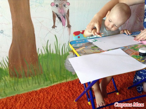 Спасибо! Да-как видите я их уже плакатом заклеила (там были раньше наклеены кошка и бабочки по всей стене-как только малыш стал бегать в ходунках-всё стало постепенно исчезать со стены )и разрисовала,но и это ненадолго помогло,малыш стал рисовать и на нём