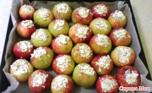 ой, хорошо, что творога взяла побольше, осталось-то совсем чуть-чуть после заполнения целого противня яблок