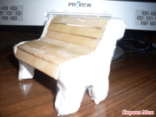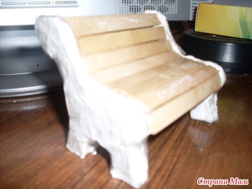 Добрый вечер всем кто заглянул. Вот смастерила лавочку для внучкиного домика. Нашла где то в инете. Сделана из картона и палочек от мороженого. Читать полностью