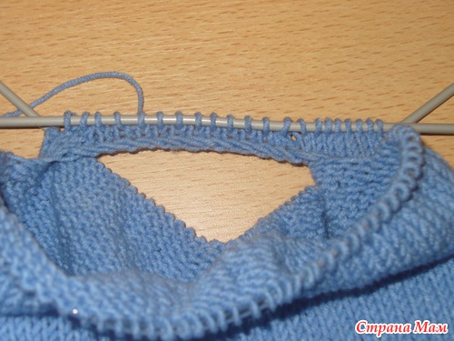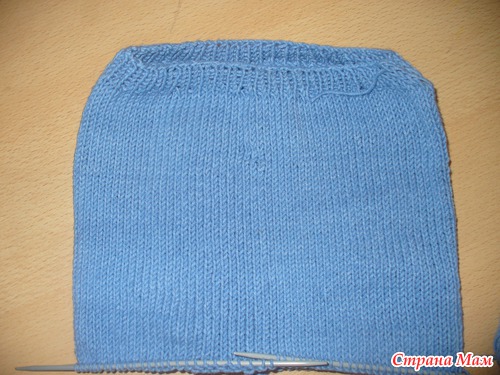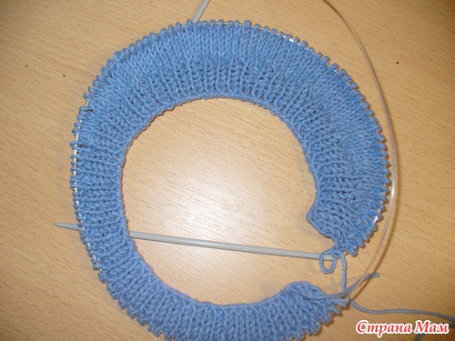 В след ряду (д. б. лицевым!) мы начинаем вязать по кругу. И вяжем на нужную длину, для малышей следует учитывать памперс, так что чуточку подлиннее.